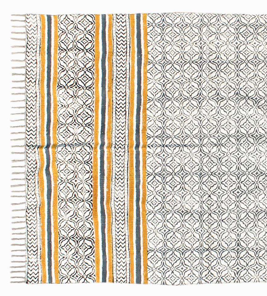Hand Knotted, Loop Pile, Handmade, Woven, Block Print