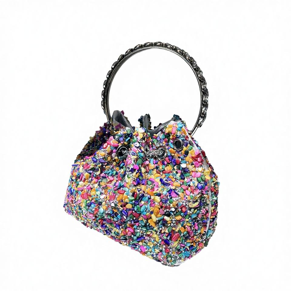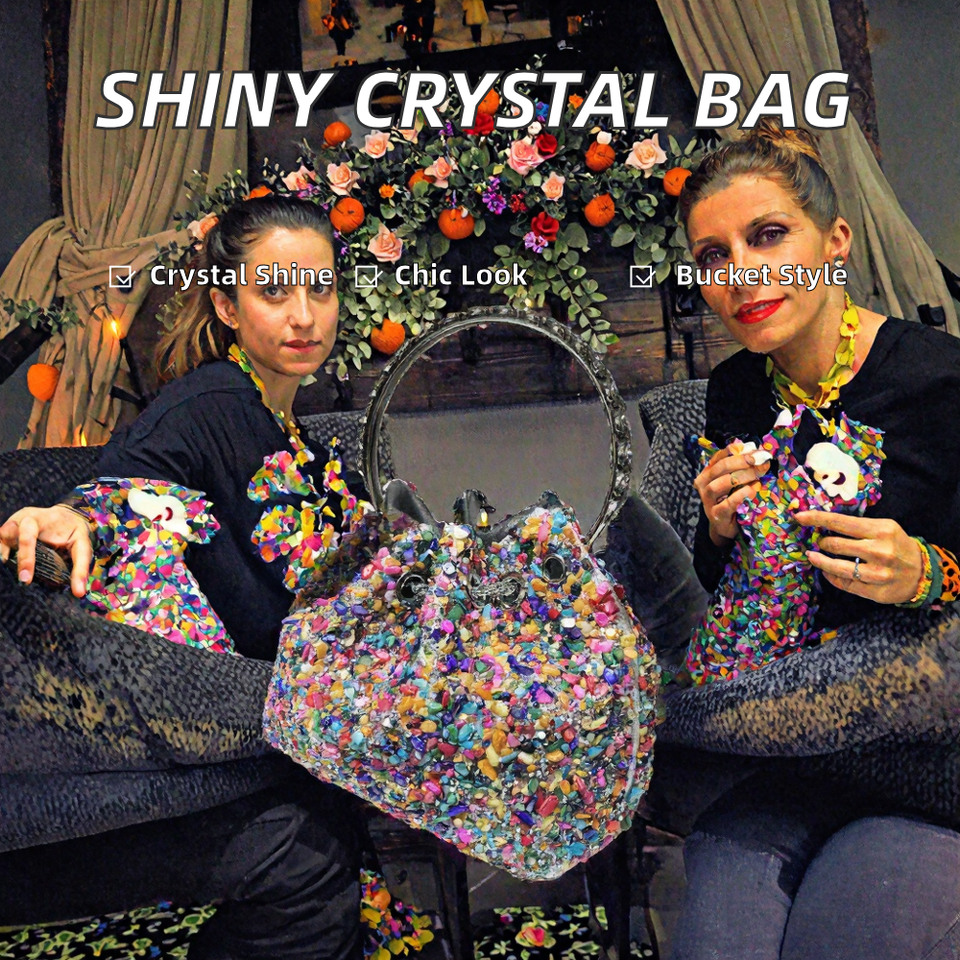 Luxury Designer Fashion Evening Clutch Bag with Rhinestones and Shiny Crystals Polyester Material Bucket Shape