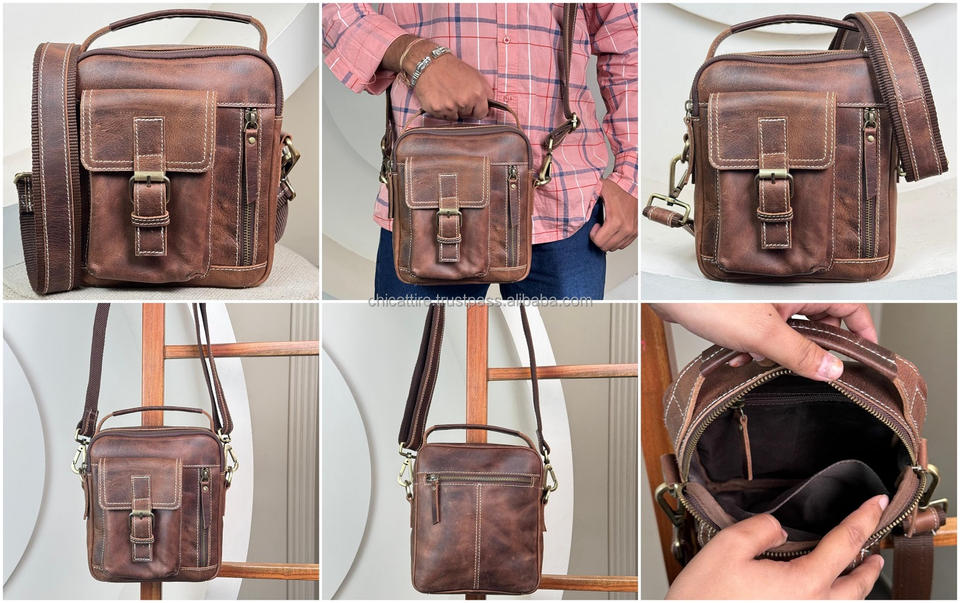 Luxury Designer Fashion Trendy Full Grain Leather Men's Messenger Bag Cow Leather Crossbody Shoulder Bag with Flap Buckle Pocket
