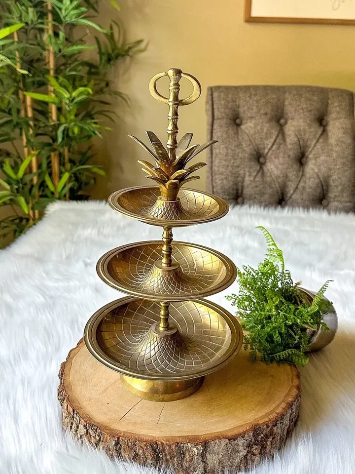 Luxury Designer Fruit Serving Gold Plated Bowl With Leaf Design Wedding Decorative Storage Brass Fruit Stand