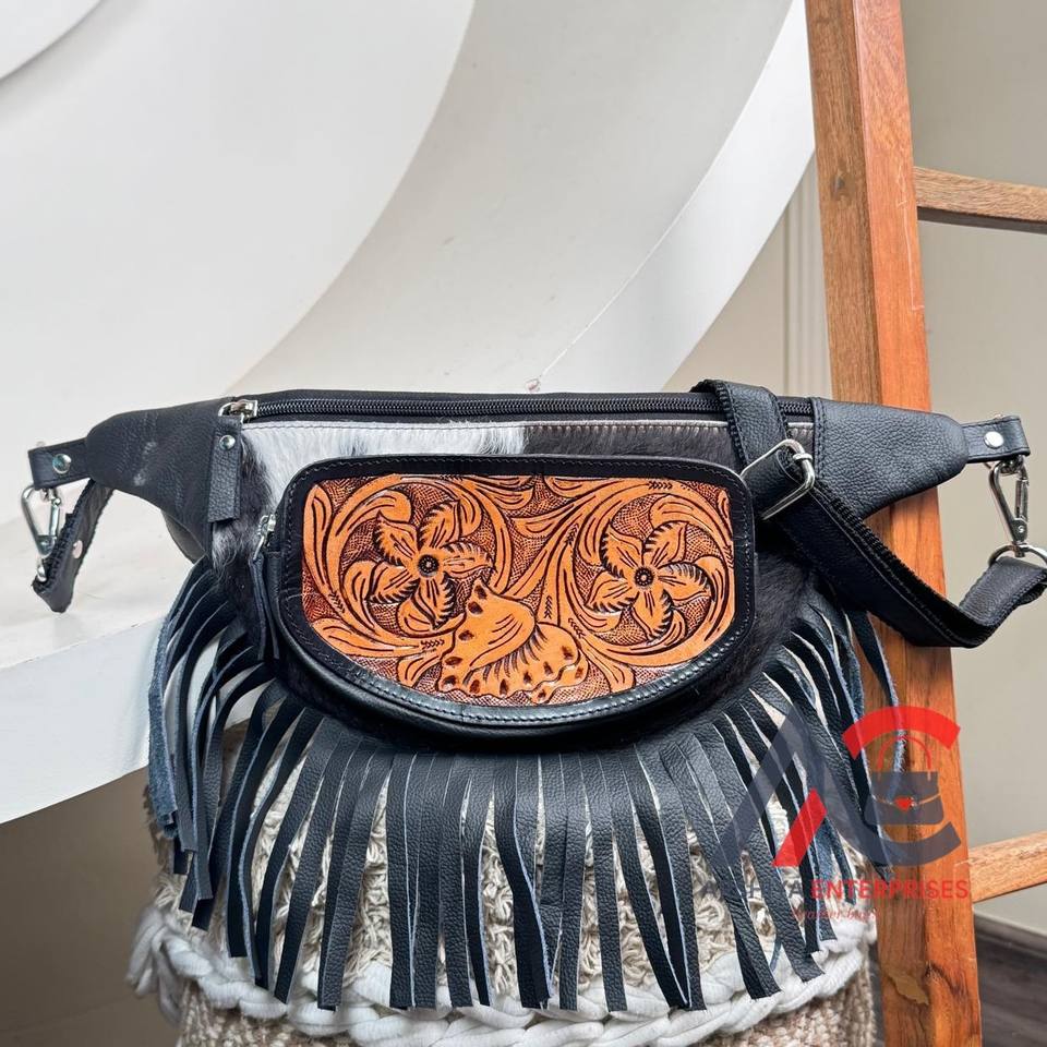 Luxury Designer Genuine Waist Bags Hand Tooled Cowhide Leather Fringe Fanny pack Chest Bag Hip Pocket Bum Bag Belt for Unisex