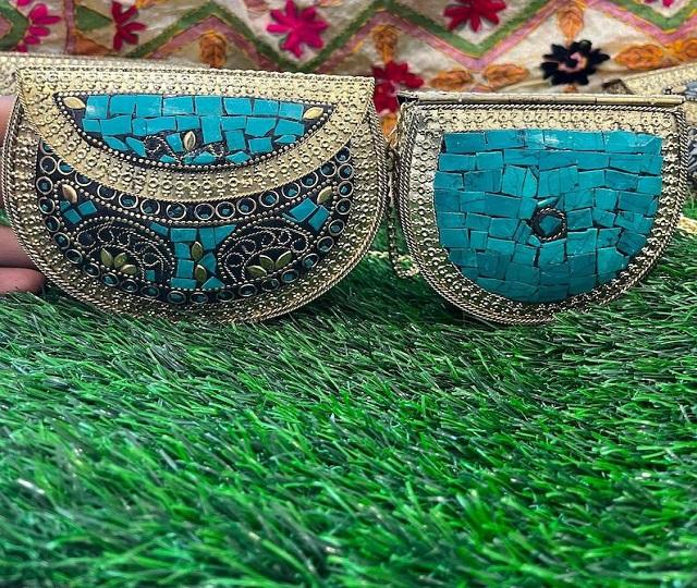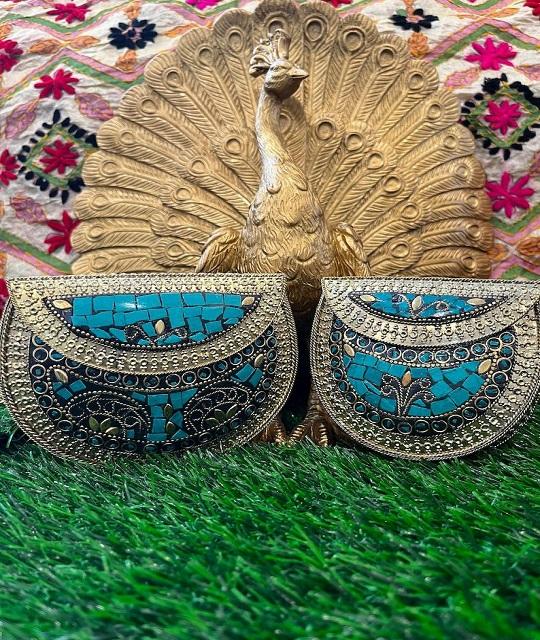 Luxury Designer Handmade Silver Evening Bags With Resin Brass Mosaic & Metal Eco-Friendly Stone Clutch Ready to Ship