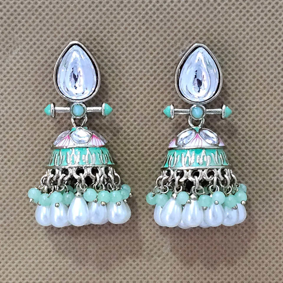 Luxury Designer Indo Western Jhumki High Quality Fashion Chandelier Earrings with Mehndi Plating