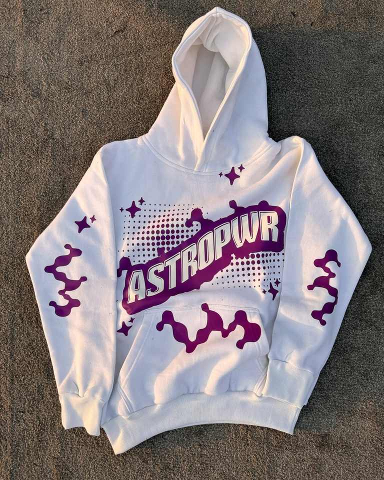 Luxury Designer Inspired White Purple Splatter Graphics Zip Up Hoodie Sweatpants Set Fashion Streetwear Tracksuit Oversized Fit