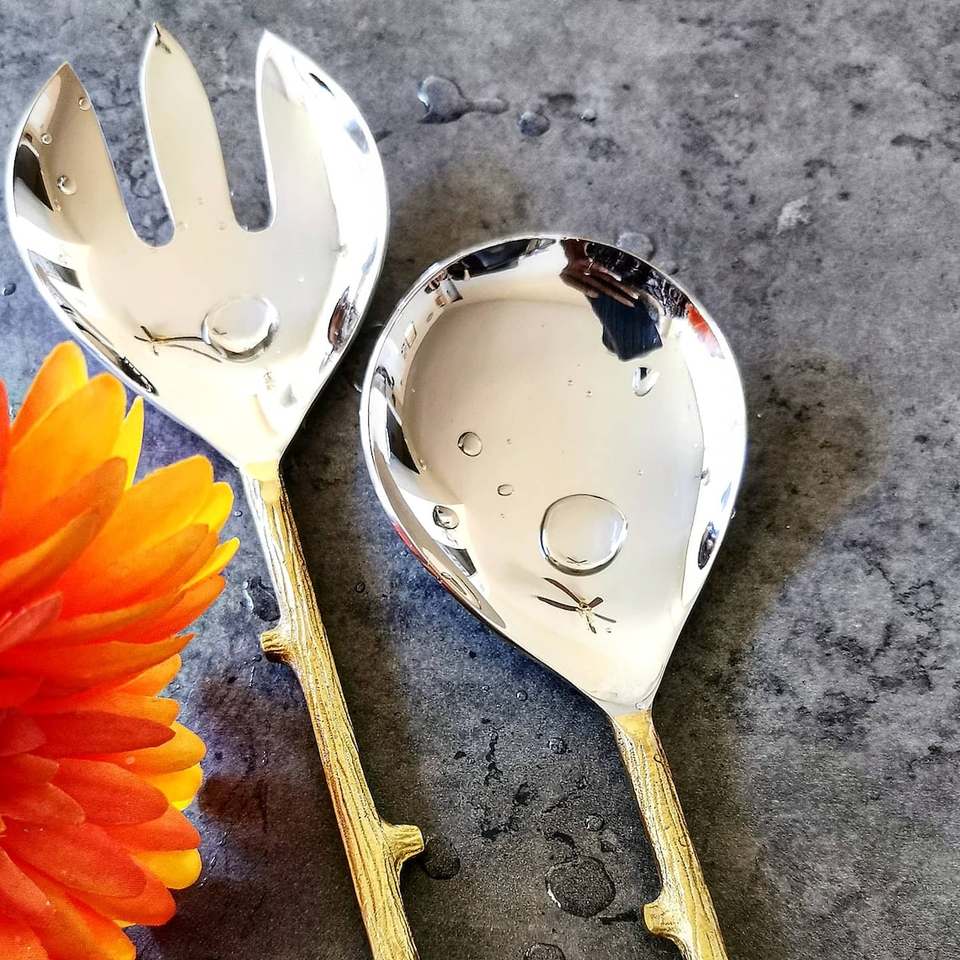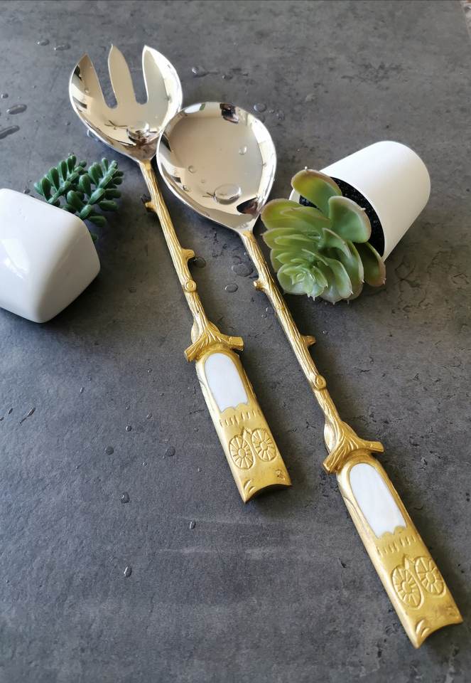 Luxury Designer Salad Spoon and Fork Set with Gold Antique Handle Perfect for Dining Party Serving and Gifting Purpose