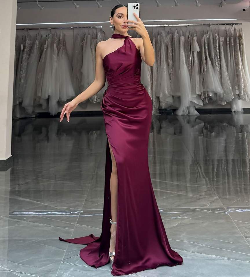 Luxury Designer Satin Crystal Maxi Evening Wedding Beaded Gowns with Pattern Breathable Anti-Static Dark Blue Formal Party Wear