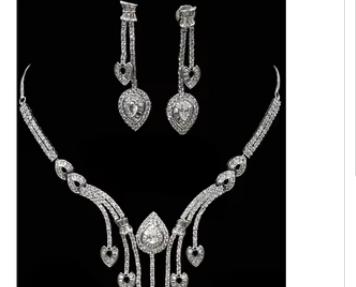 Luxury Designer Statement Silver Finish Jewelry Set with Royal White Zircon Brass Necklace Set for Wedding Party Gift