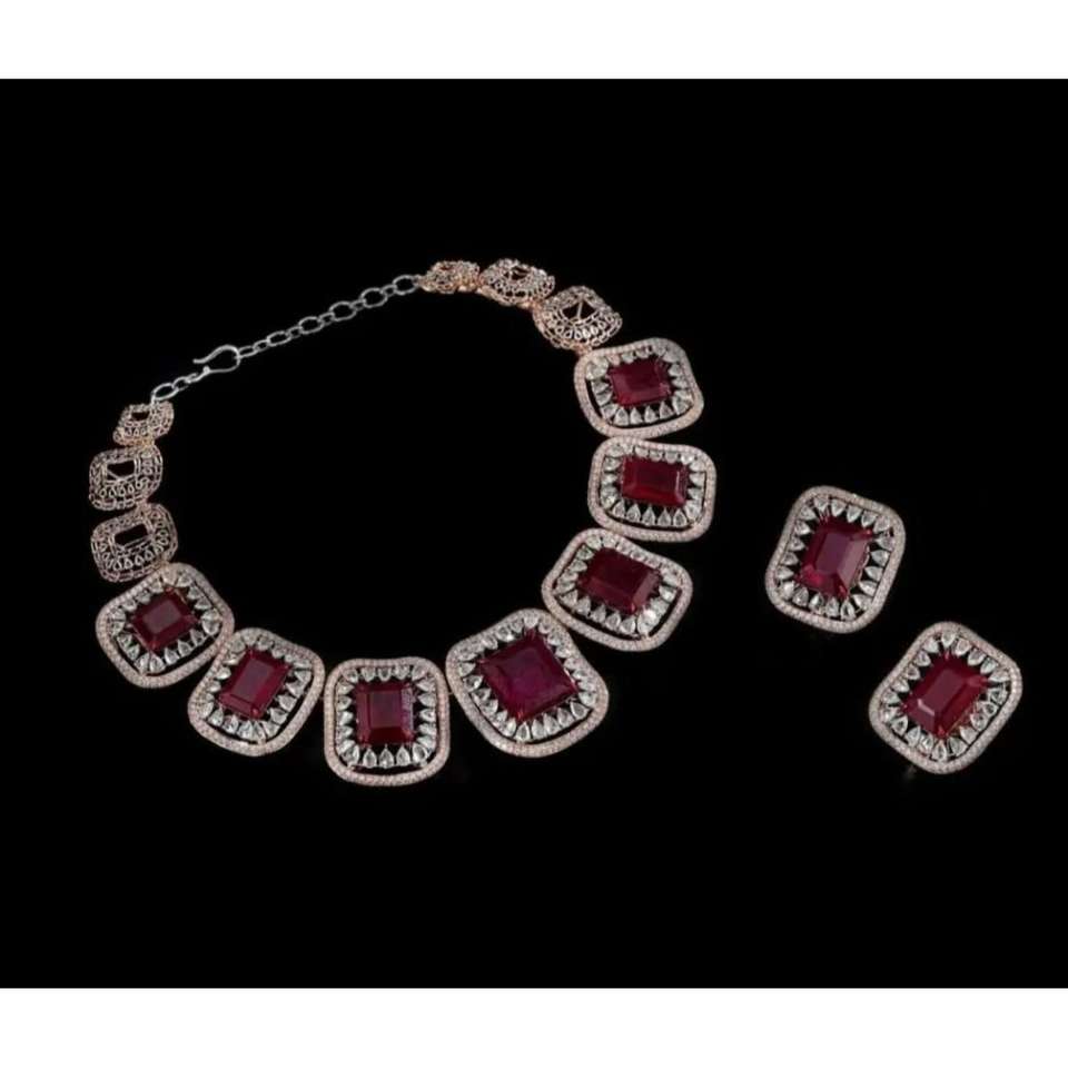 Luxury Designer Women Brass Necklace Set with Stone Work Fashion Jewelry for Party and Special Occasion Use from Indian Supplier