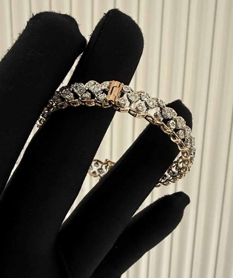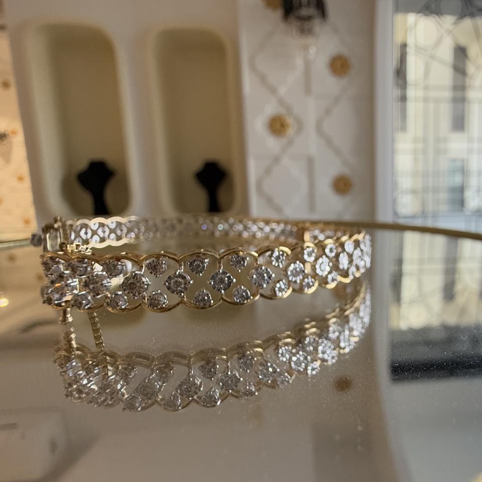 Luxury Women's Diamond Bangle 14K 18K Solid Gold Natural Brilliant Cut Yellow White Gold Jewelry Handmade Elegant Design Third