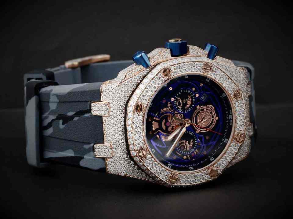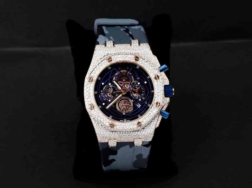 Luxury Mechanical Chronograph Stainless Steel Watch with Leather Strap Water Resistant Analog Dial and Moissanite