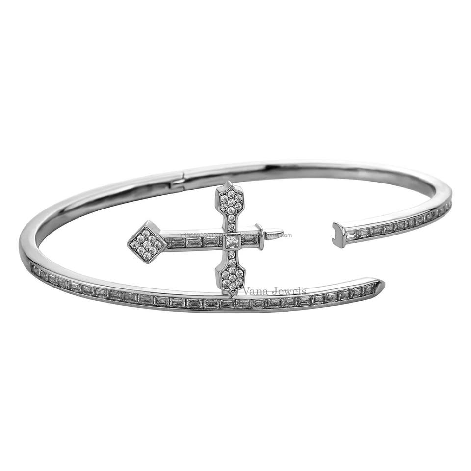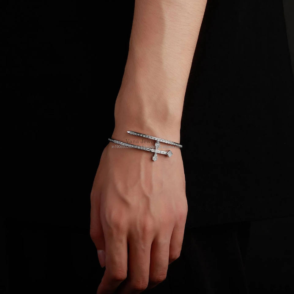 Luxury Moissanite Dagger Bracelet 925 Sterling Silver Chain Link Men's Flat Price Jewelry Custom Lengths 6-9 Inch Wholesale