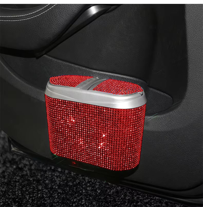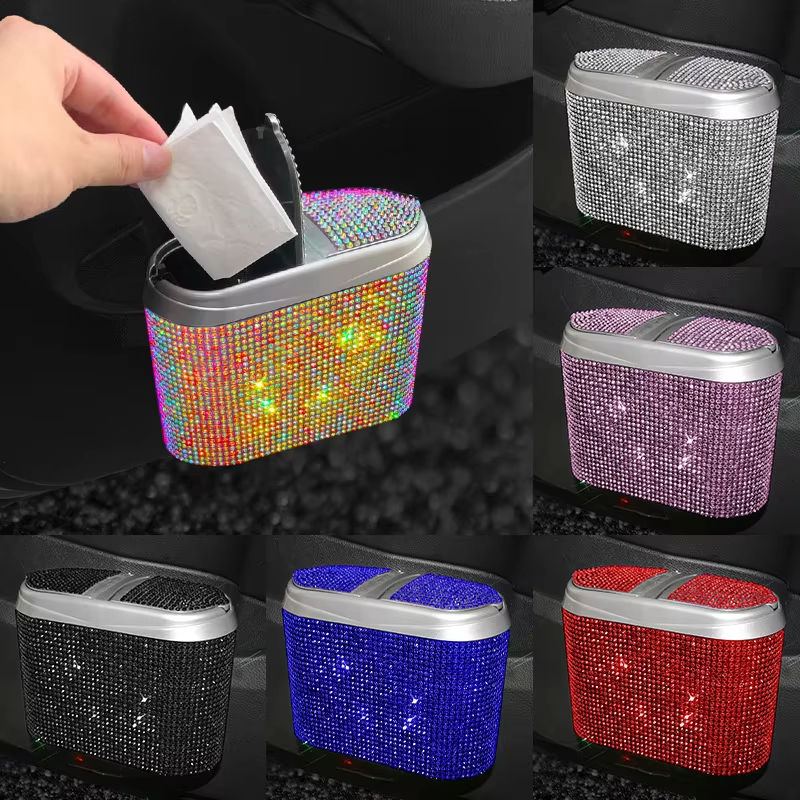 Luxury Diamond-Studded Car Trash Can Organizer Rear Hanging Storage Bag with Double Open Storage Box Side Seat Organizer