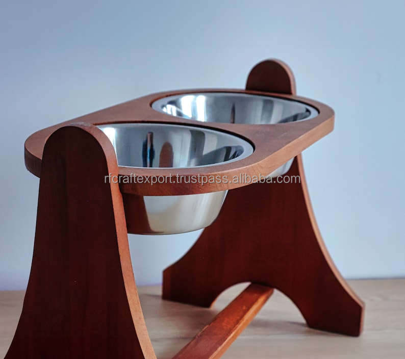 Luxury Double Dog Bowl Lesser Cut MDF & PET Material Portable Puppy & Dog Feeder Water & Food Bow l