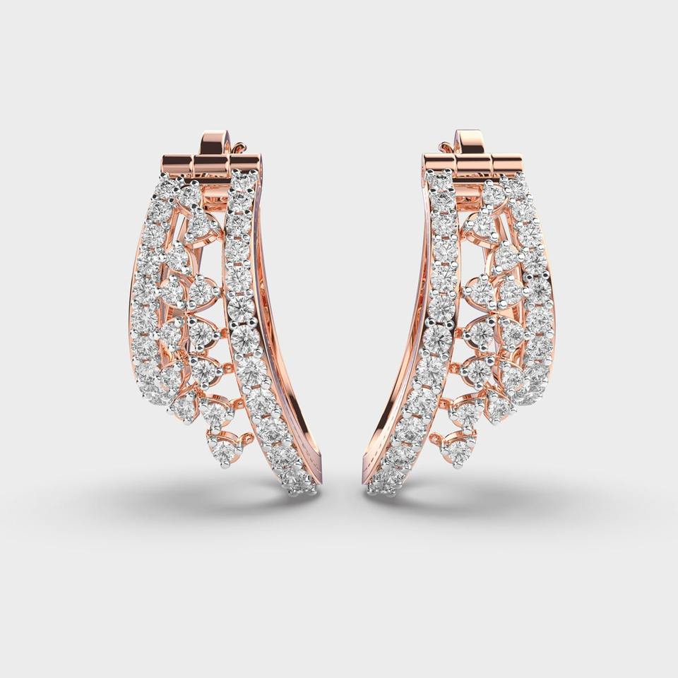 Luxury Double Row Pav Diamond Hoop Earrings 14K Rose/Yellow/White Gold Hinged 1.07ct Brilliant Cut Rhodium Wedding Gift Party