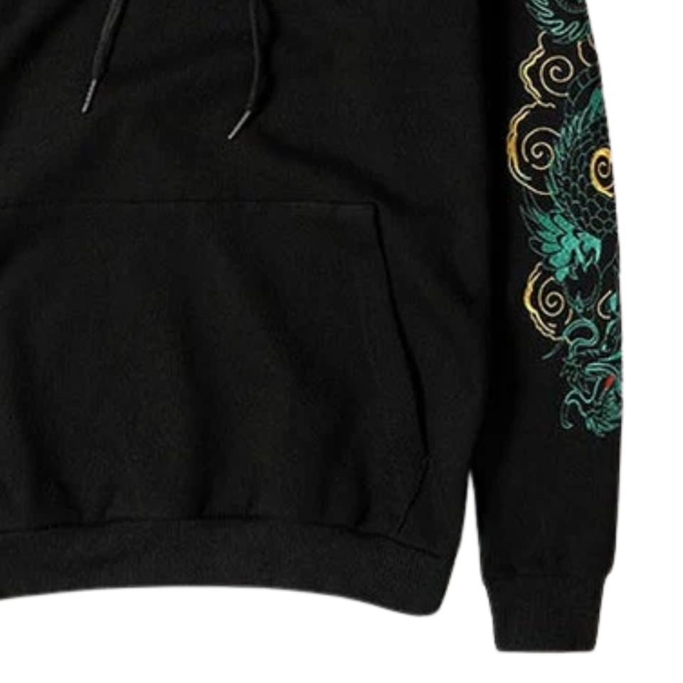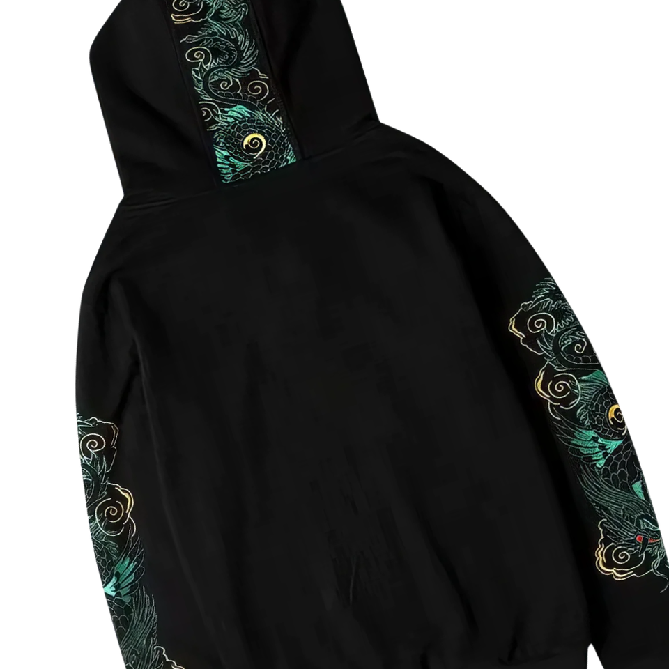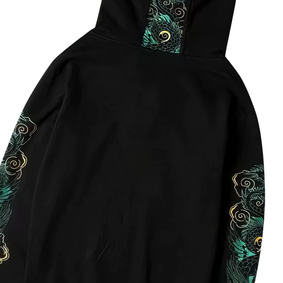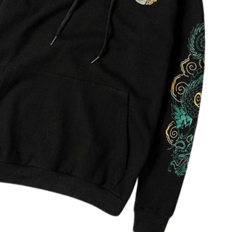 Luxury Dragon Embroidered Hoodie Men Japanese Streetwear Oversized Harajuku Black Pullover Green Gold Design Winter Sweatshirt
