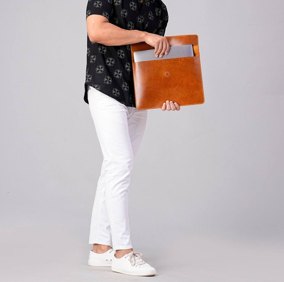 Luxury Durable Genuine Leather Fashionable Laptop Sleeve Soft Protective Case for Office Home and Travel Use LLS-0060