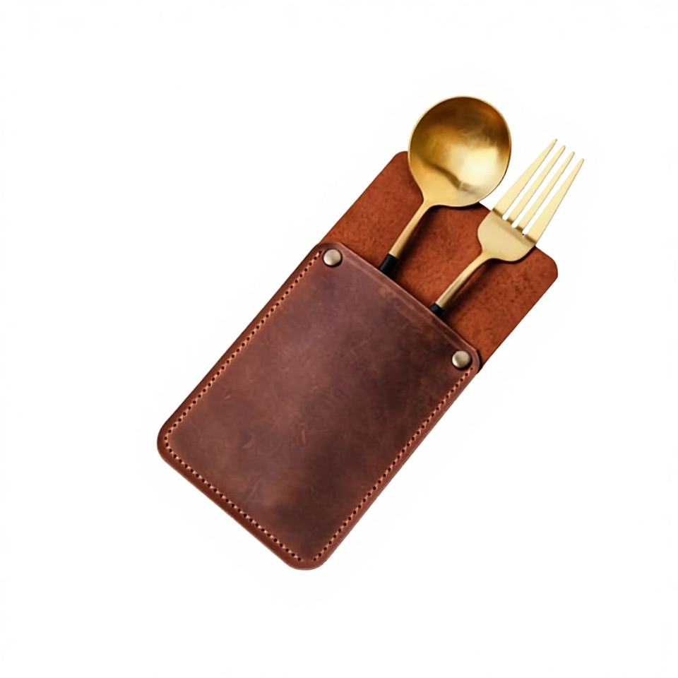 Luxury Durable Leather Cutlery Holder Roll Reusable Utensil Organizer Water Shock Proof for Hospitality Wholesale Buyers