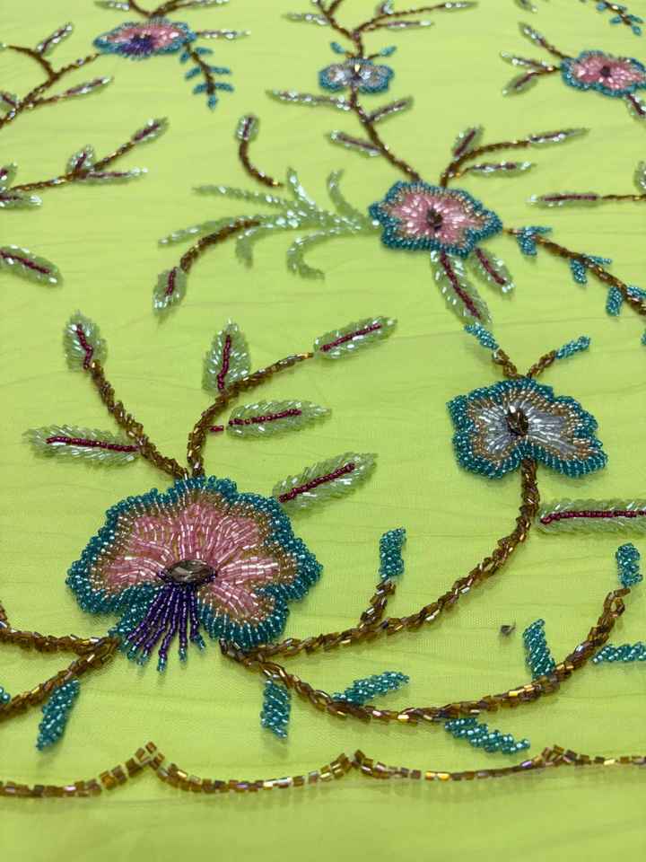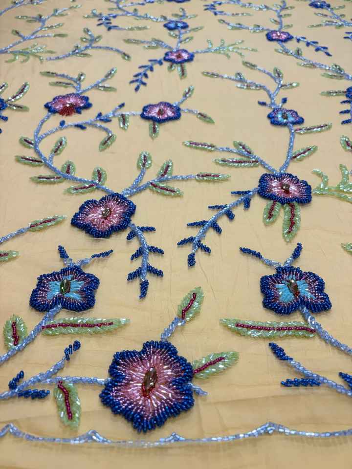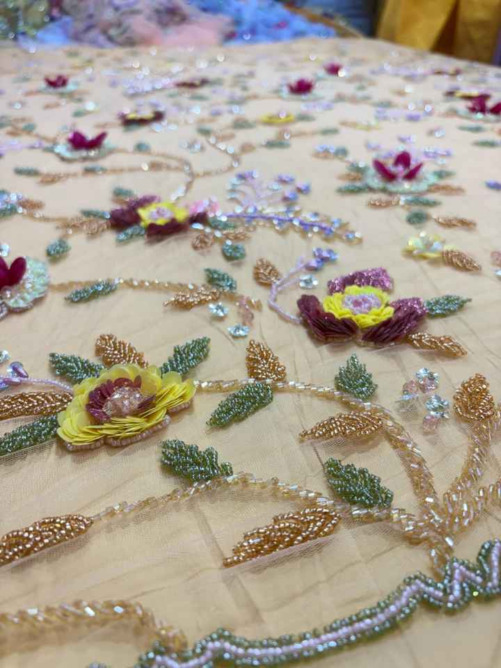 Luxury Eco-Friendly Beaded Flower Embroidery Lace Fabric for Bridal & Couture Dresses