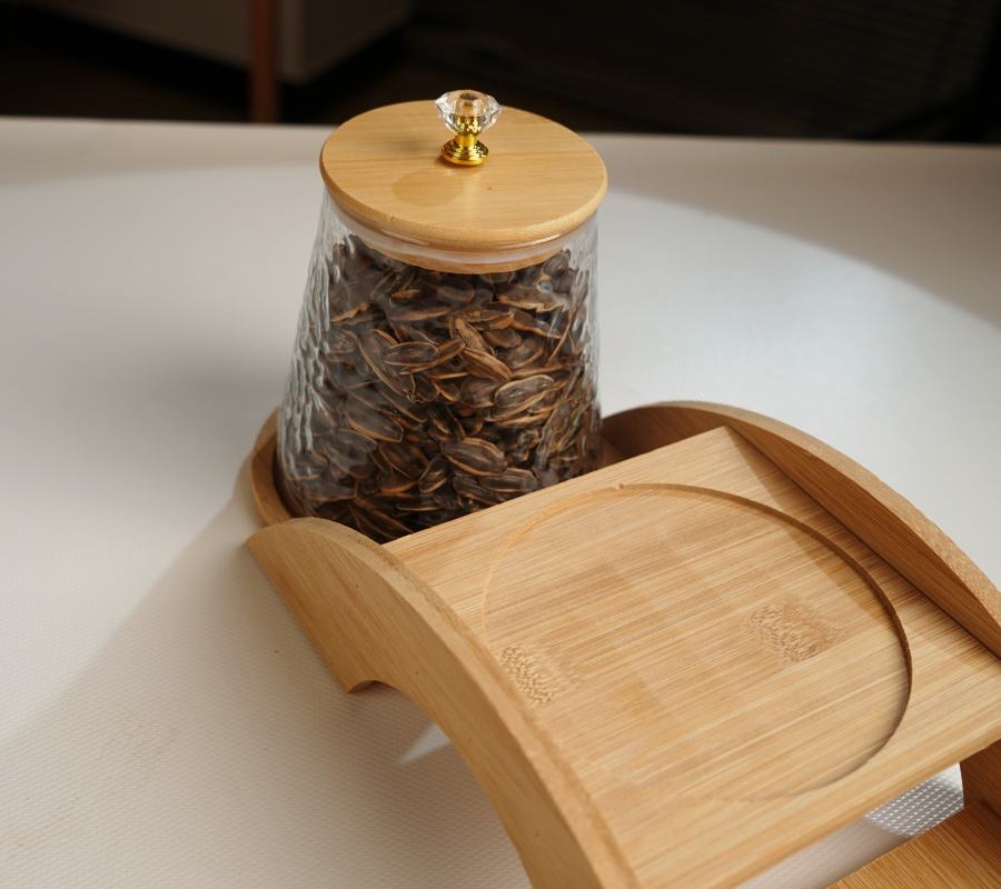Luxury Eco-Friendly Glass Cookie Jar Bamboo Lid Stylish Modern Design Cylinder Countertop Storage for Tea Spices Customizable