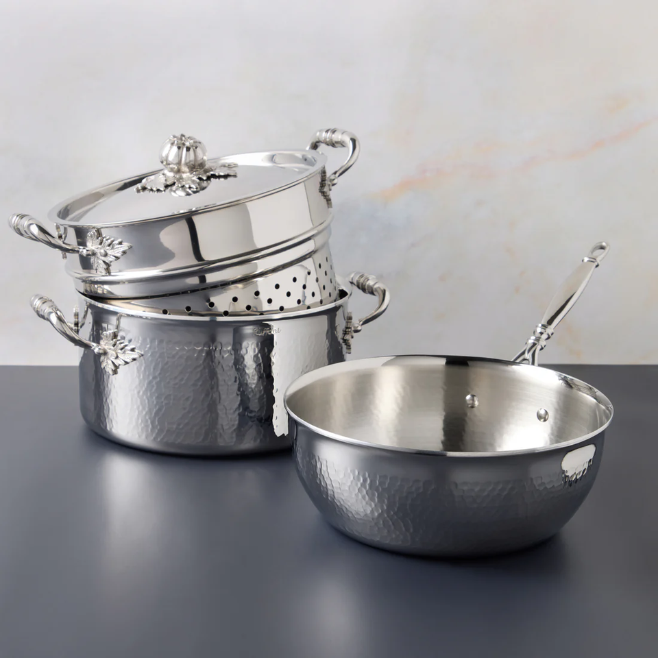 Luxury Eco-Friendly Hammered Stainless Steel Saucepan with Decorative Grape Lid Handle Gas Cooker Compatible Cookware