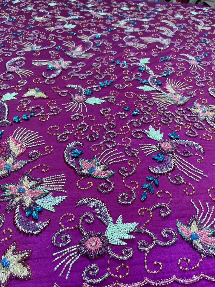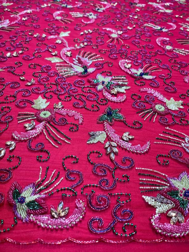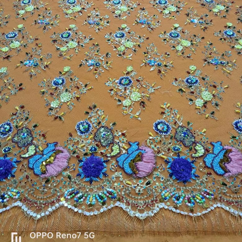 Luxury Eco-Friendly Hand Beaded Embroidery Net Fabric PVC Coated Weft for Cross-Style Accessories