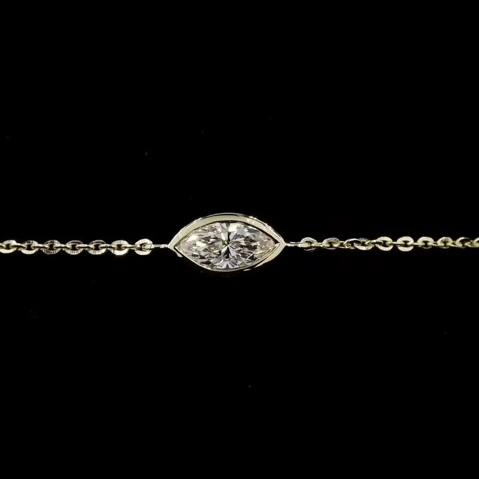 Luxury Elegant 0.5 Ct Marquise Lab Grown Diamond Bracelet 14K Yellow Gold 7 Inch Minimalist Chain VVS VS EF Clarity Jewelry