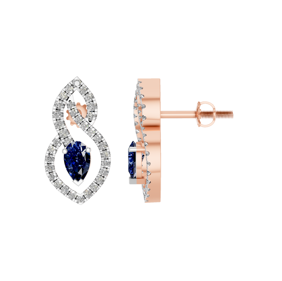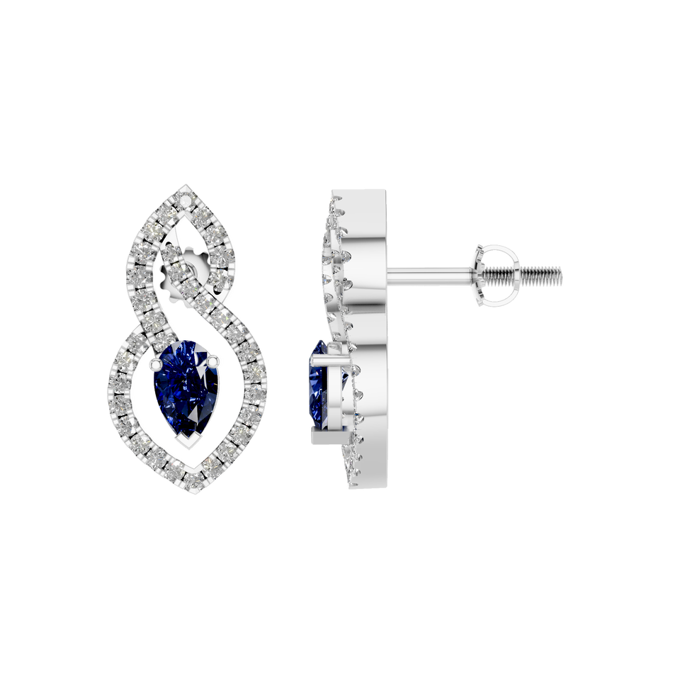 Luxury Elegant 14K 18K Solid White Gold Earrings Pear Cut Sapphire with Natural Emerald Diamond Gold Plated for Weddings
