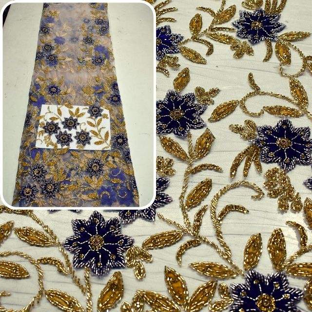 Luxury Elegant 3D Beaded Sequin Embroidery Fabric Organza 5 Yards MOQ with Applique Lace for Dresses