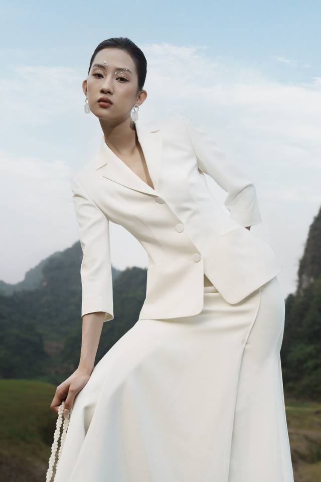 Luxury Elegant Women's Skirts Blazer Set HANI LONG SKIRT 73% Polyester 17% Rayon 10% Spandex Custom Labels Tags WHITEANTVietnam
