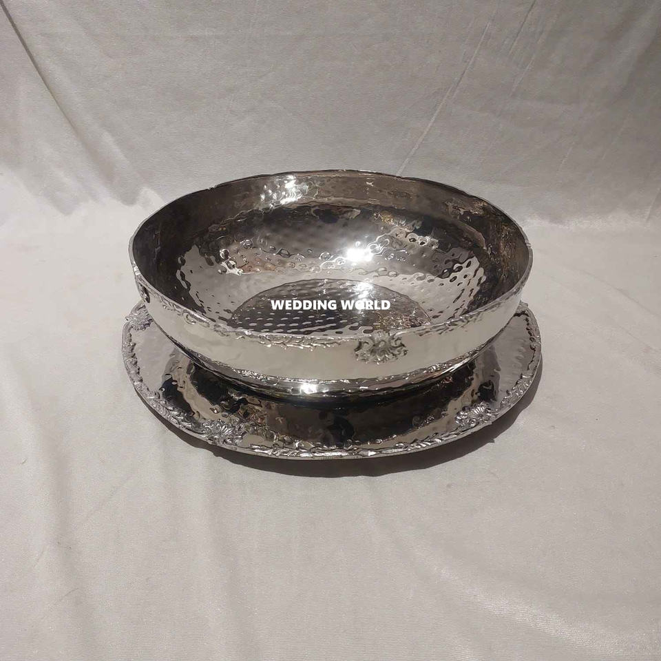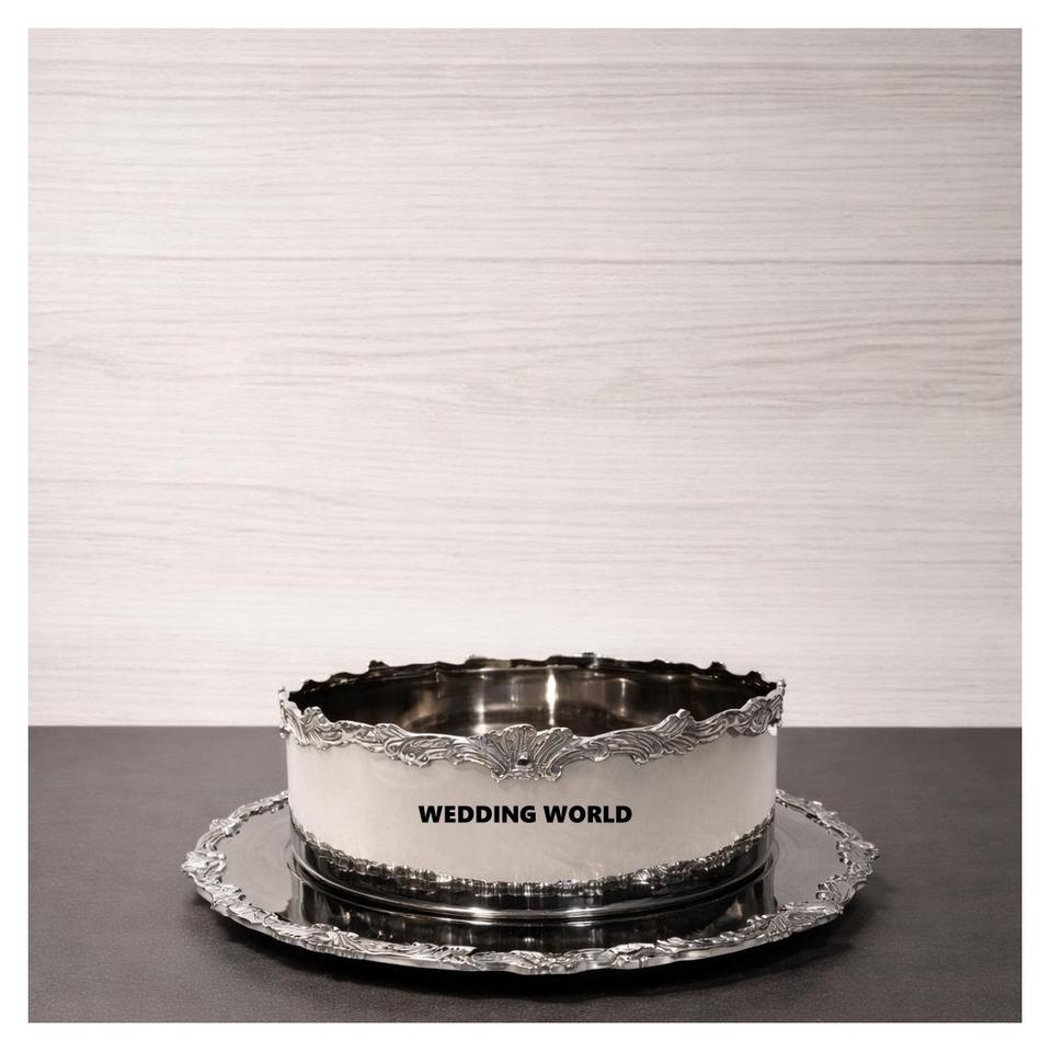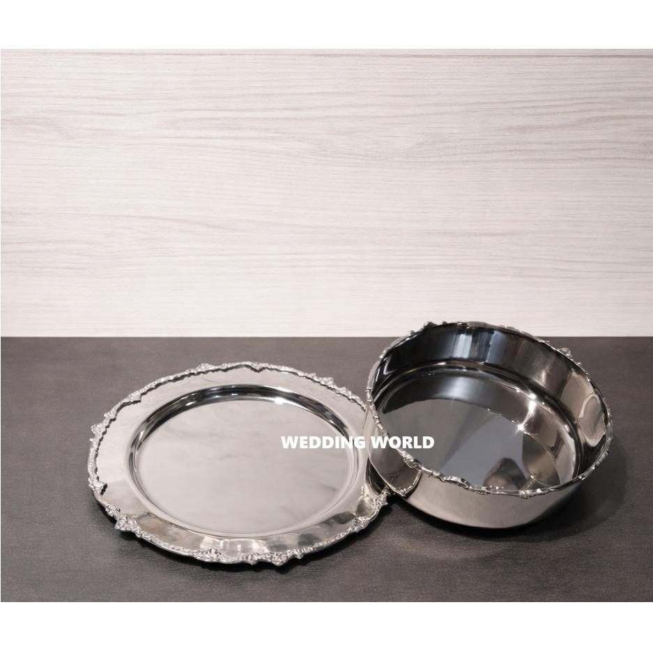 Luxury Embossed Design Metal Chocolate Bowl With Plate Shiny Nickle Plated Decorative Hot Selling Metal Chocolate Bowl