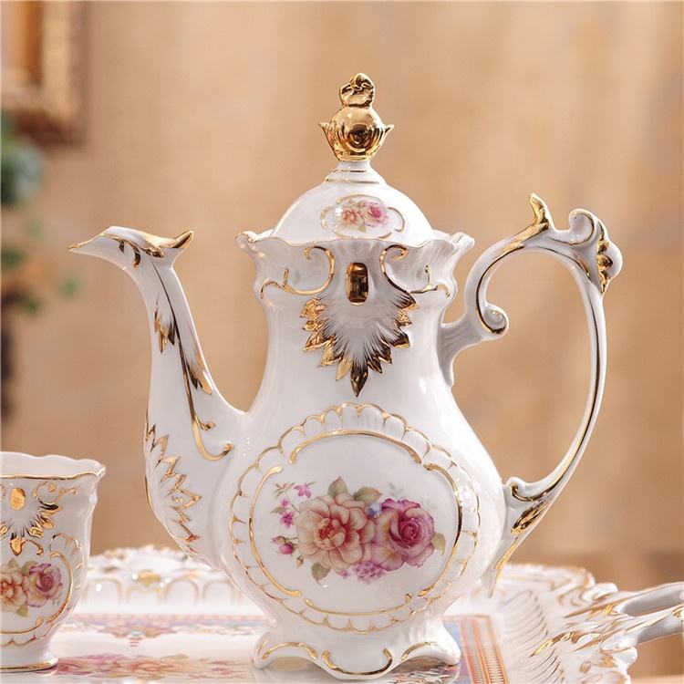 Luxury Embossed Flower White Afternoon Tea Coffee Set Best-selling European Country Ceramic Tea Pot Customized Color