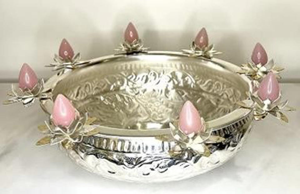 Luxury Embossed Serving Bowl for Kitchenware Hotel Restaurant Fruits Serving Bowl Silver Finished Round Shape Brass Serving Bowl
