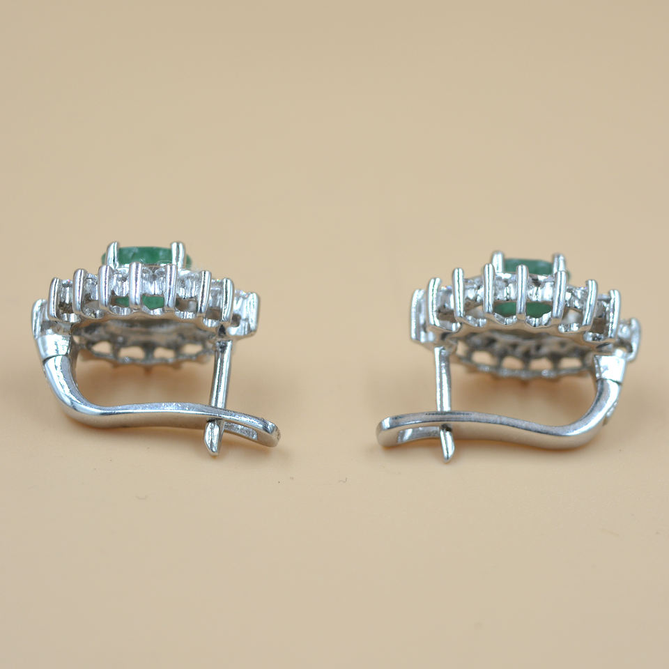 Luxury Emerald Cuff Earrings Handmade Silver Plated Fine Jewelry for Women Trendy Style for Parties and Weddings