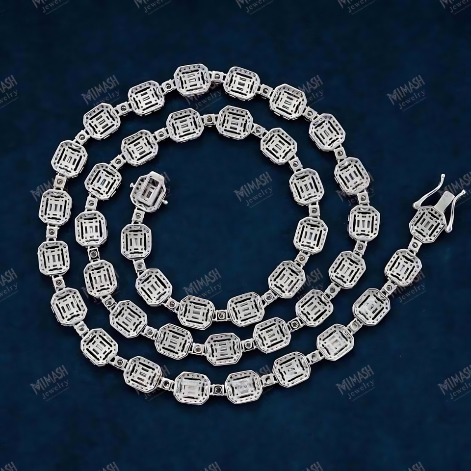 Luxury Emerald Cut Moissanite Tennis Chain Iced Out VVS Clarity Necklace for Men & Women, Premium Hip Hop Fashion Jewelry
