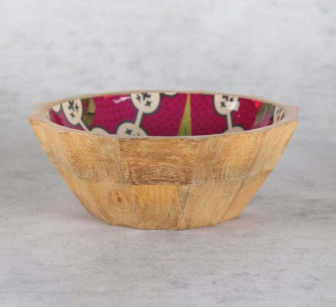 Luxury Enamel Printed Wooden Serving Bowl Tray New Design Round Chocolate Bowl Handmade in for Mango Wood for Weddings and