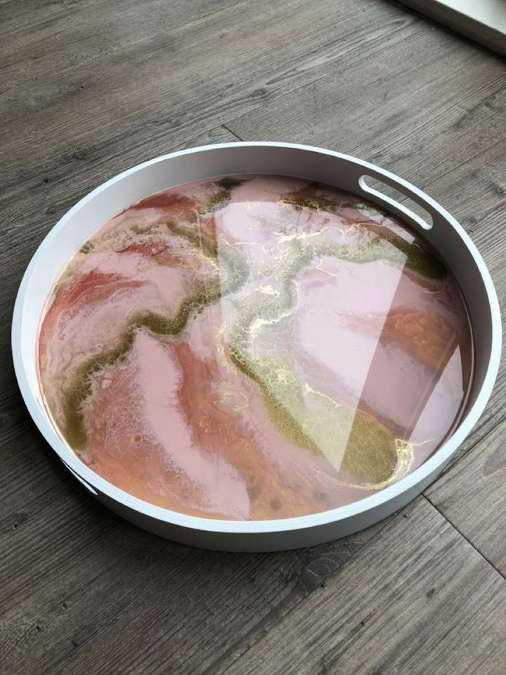 Luxury Epoxy Resin Tray Round Serving Platter Coffee Table Food Storage Organizer Kitchen Home Restaurant Hotel Dishes Handle