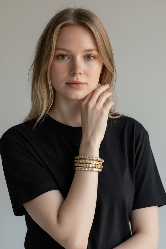 Luxury Ethnic Flower Style Pearl Emerald Cut Glass Bangle Wedding Wear Assorted Sizes High Demand Ready to Ship for Women
