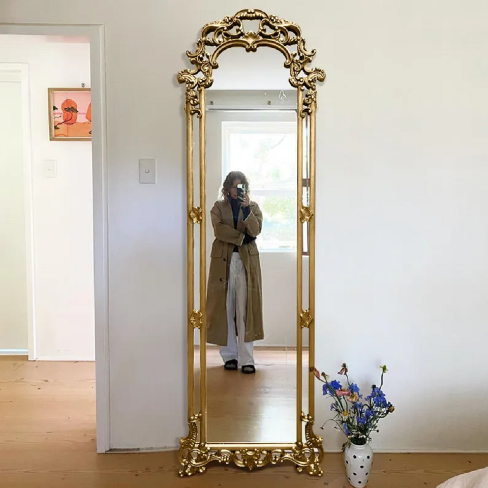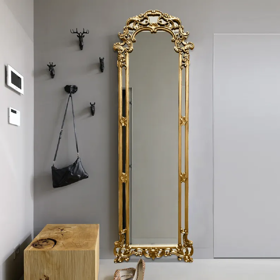 Luxury European Retro Style Living Room Floor Mirror Fitting Mirror Dressing Mirror for Home Hotel Bedroom