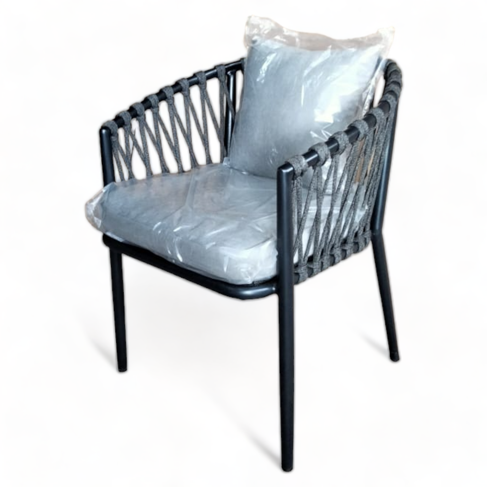 Luxury European Single Sofa Powder Coated Aluminum Woven Rope Patio Lounge Chair for Dining Courtyard Hotel Beach Park Outdoor
