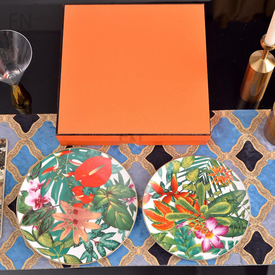 brand name:Simple Plant Pattern 2pcs Porcelain Dinner Plate