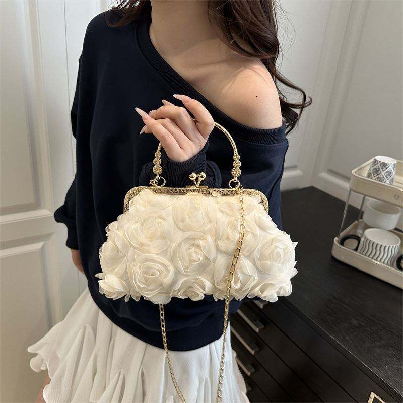 Luxury Evening Bag for Women Hot Sales Crystal Flower Box Rhinestones Embellished Pouch Purse for Wedding Party Event Chains