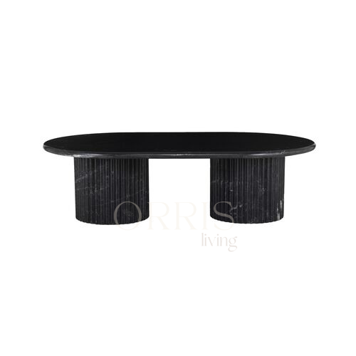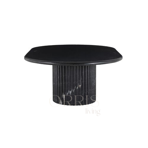 Luxury Exotic Black Marble Coffee Table Oval Top with Twin Fluted Pedestal Base Handmade Durable for Modern Living Room Decor