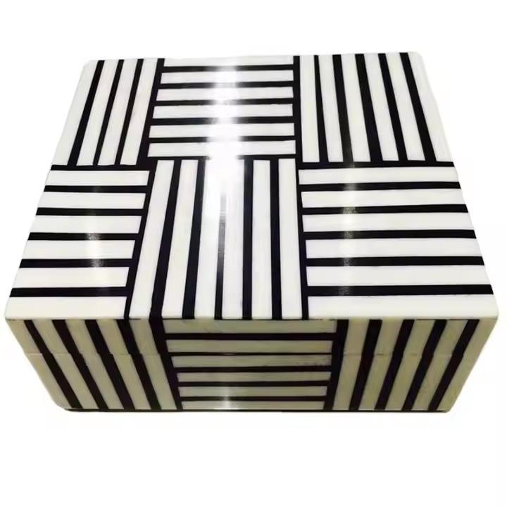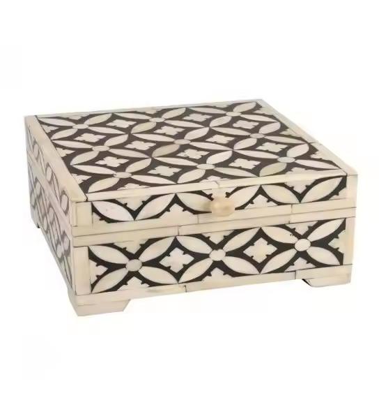 Luxury Exquisite Wood Storage Box Sophisticated Bone Resin Inlay Crafted for Love Theme Jewelry Pattern for Sophisticated Home D
