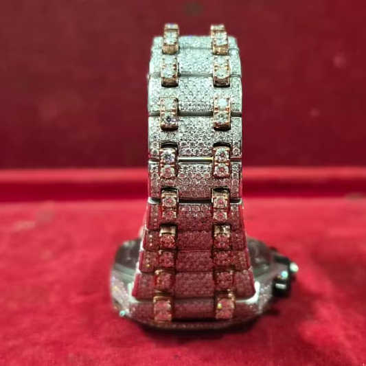 Luxury Fashion Hip Hop Custom Skull Shape Two Tone Moissanite Diamond MF Jewels Moissanite Necklace 3BAR Water Resistant Watch