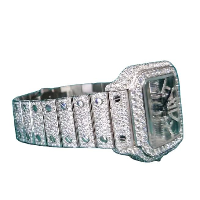 Luxury Fashion Iced Diamond Moissanite Watches Men's Women 41mm Watch with Stainless Steel Band Hip Hop Style Water Resistant