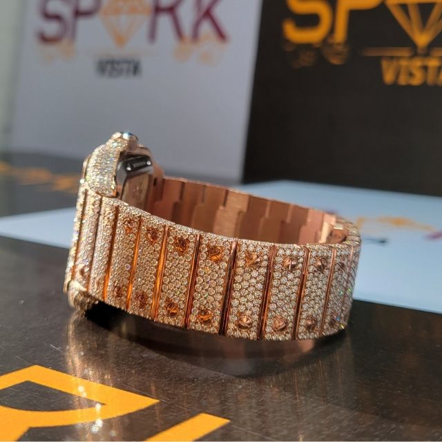 Luxury Fashion Rose Gold Stainless Steel 40mm Glass Skeleton Dial Watch Full Pave Stones Square Case Design Mechanical Movement