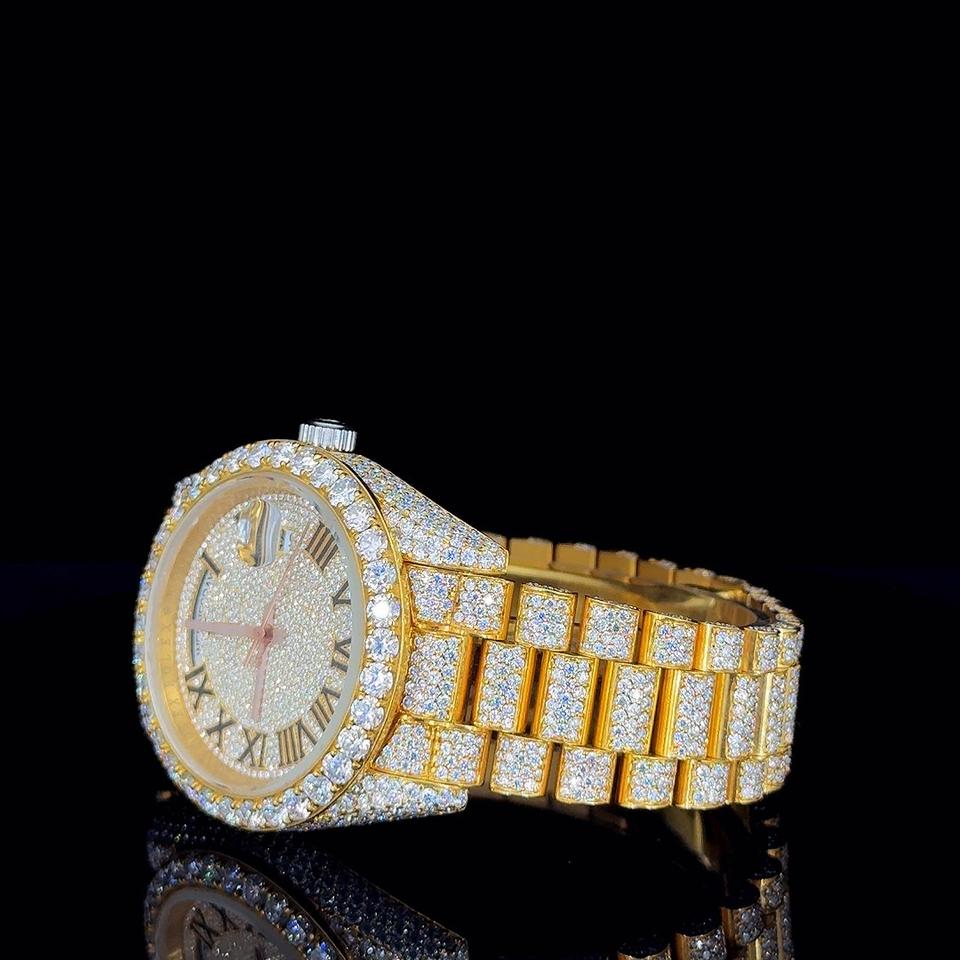 Luxury Fashion Seiko Quartz Iced Silver Wristwatch Roman Numeral Diamond Dial for Display Elegant Sparkling Bracelet Men
