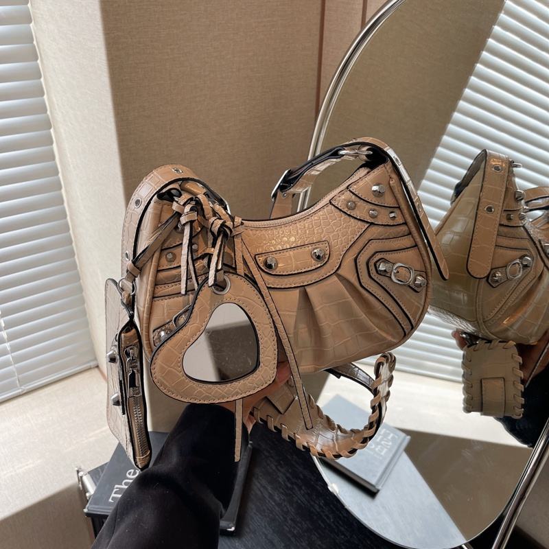 Luxury Women's Half-Moon Mini Bag New Fashionable PU with Crossbody Strap Shiny Diamond Rivet Zipper Closure and Mirror