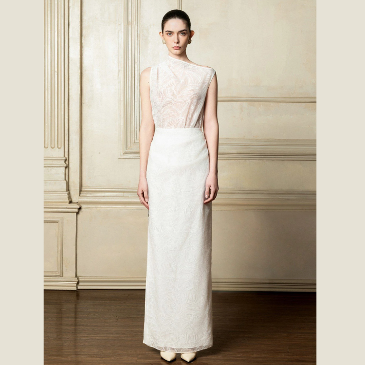 Luxury Fashion Women's Skirts ALETHEA ASYMMEKIC SKIRT Leaf Pattern Eco-Friendly Fabric Custom Logo Women's Skirt And Blouse Sets
