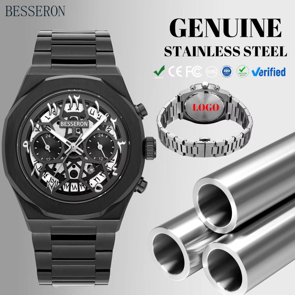 Luxury Fashionable Charm Men's Quartz Stainless Steel Watch Sapphire Crystal Pointer Water Resistant 5 Bar Business Style Custom